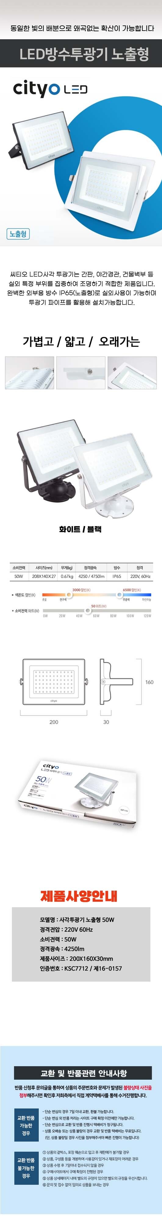 씨티요 야외 옥상 창고 수목 잔디 실외 투광등 사각
