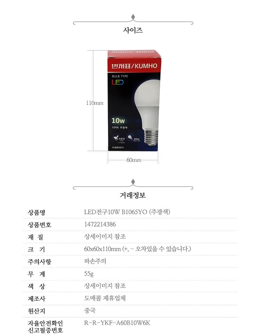 LED전구 10W 주광색 x10개 형광등다마 전구교체