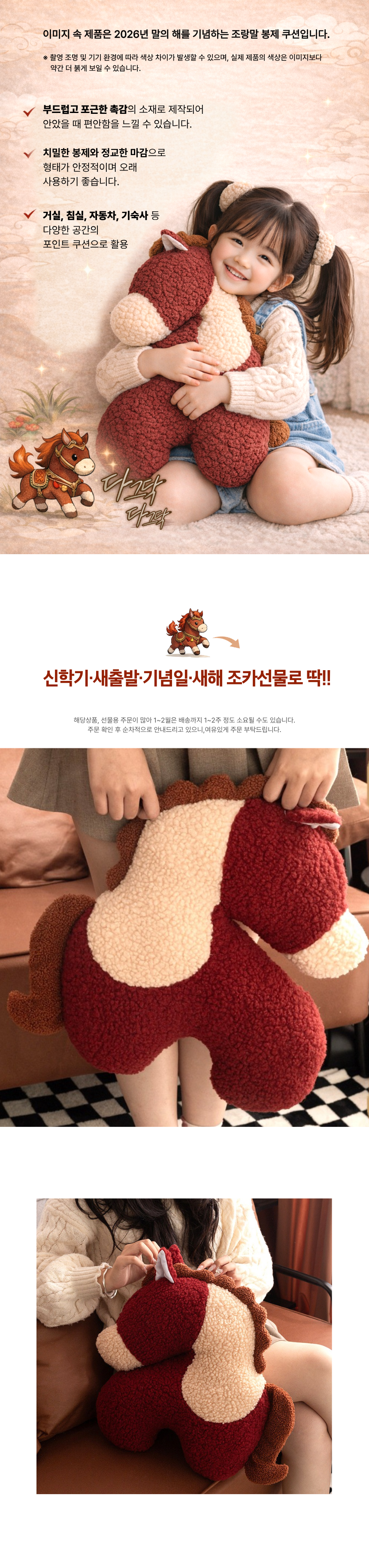바이브모션 말띠 조랑말 봉제 쿠션 신학기 기념일 발렌타인데이 거실 차량용