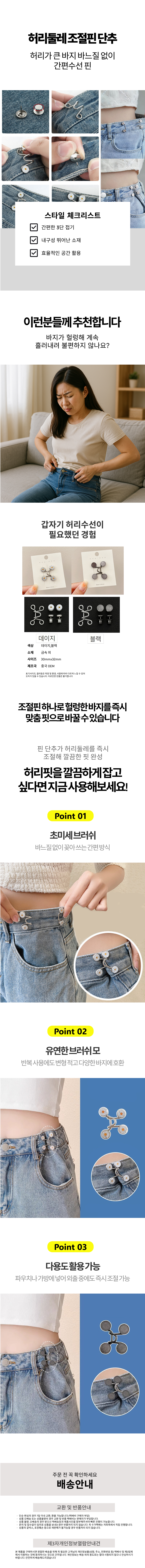 정장바지 바지허리줄이기 줄이기 조절단추 단추 간편