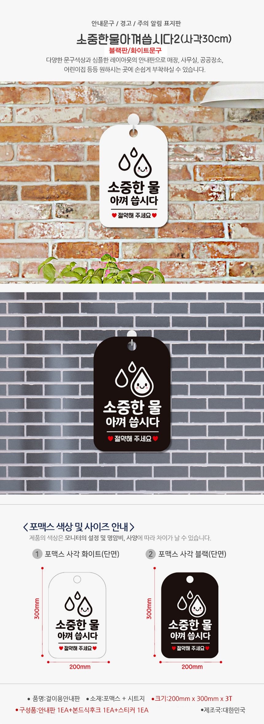 물을아껴씁시다 사각안내판 매장알림판 블랙