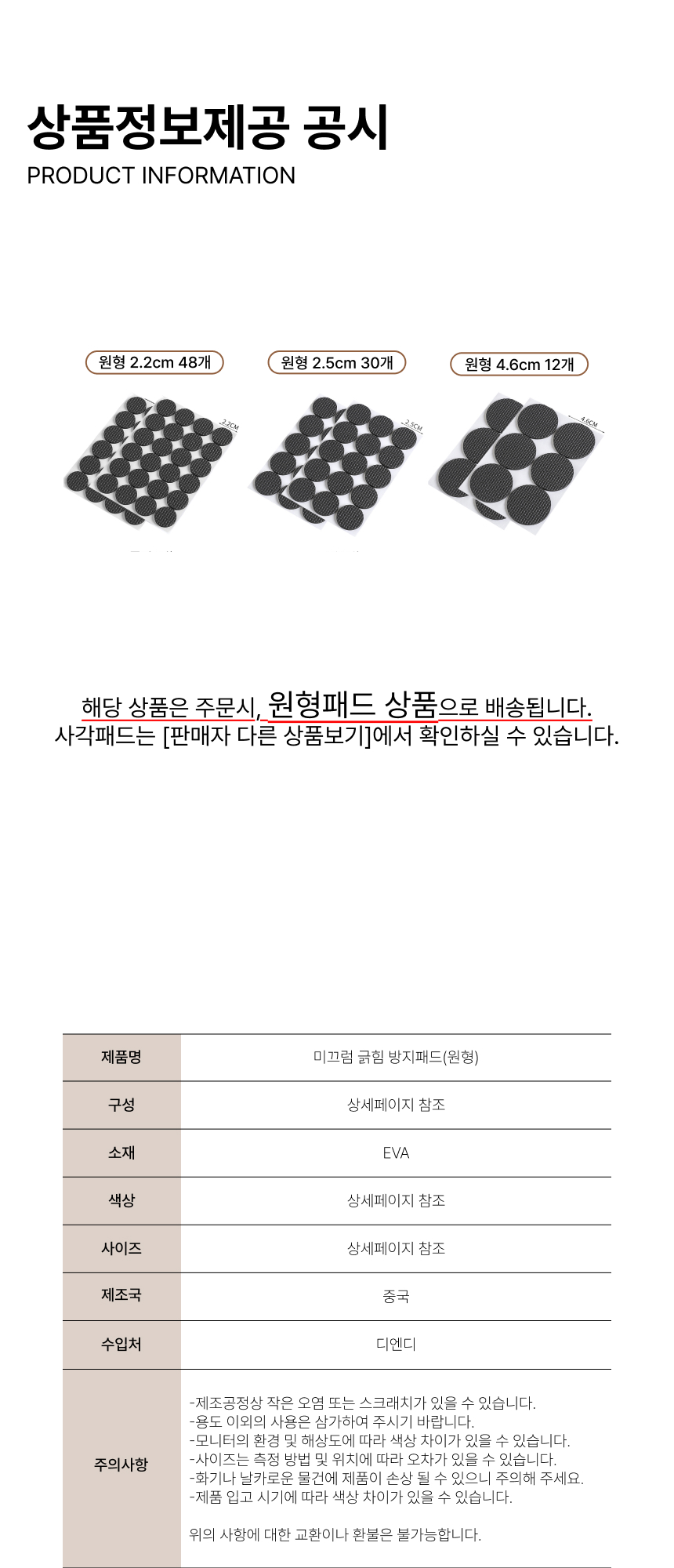 가구 발 패드 미끄럼 긁힘 마루 바닥 보호 층간 소음 방지 (원형)