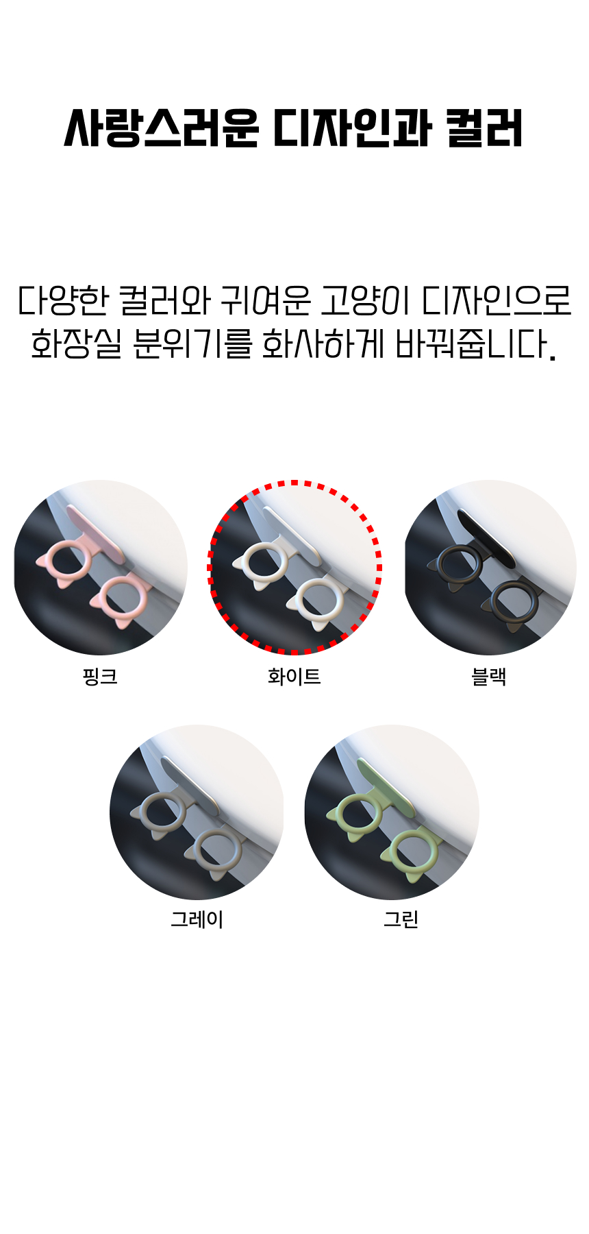 귀여운 고양이 변기 커버 손잡이 (화이트)