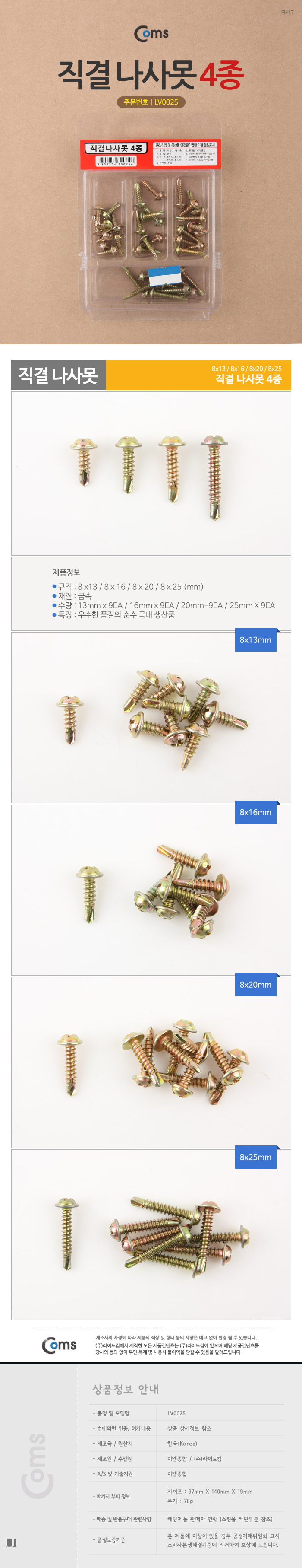 직결 나사 못 4종 LV0025