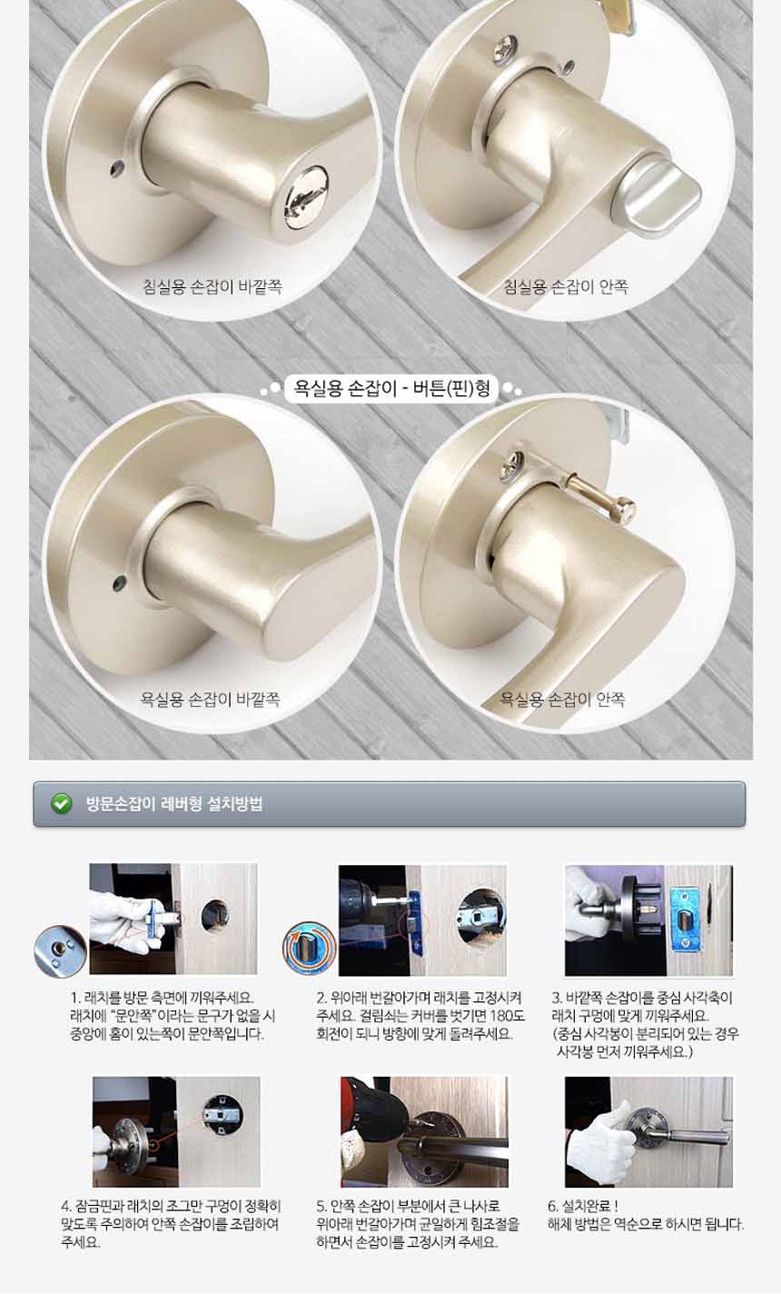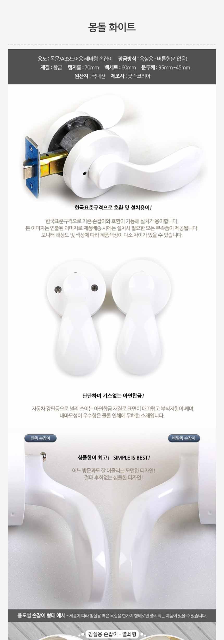 굿락 몽돌 화이트 목문 방문 손잡이 욕실용