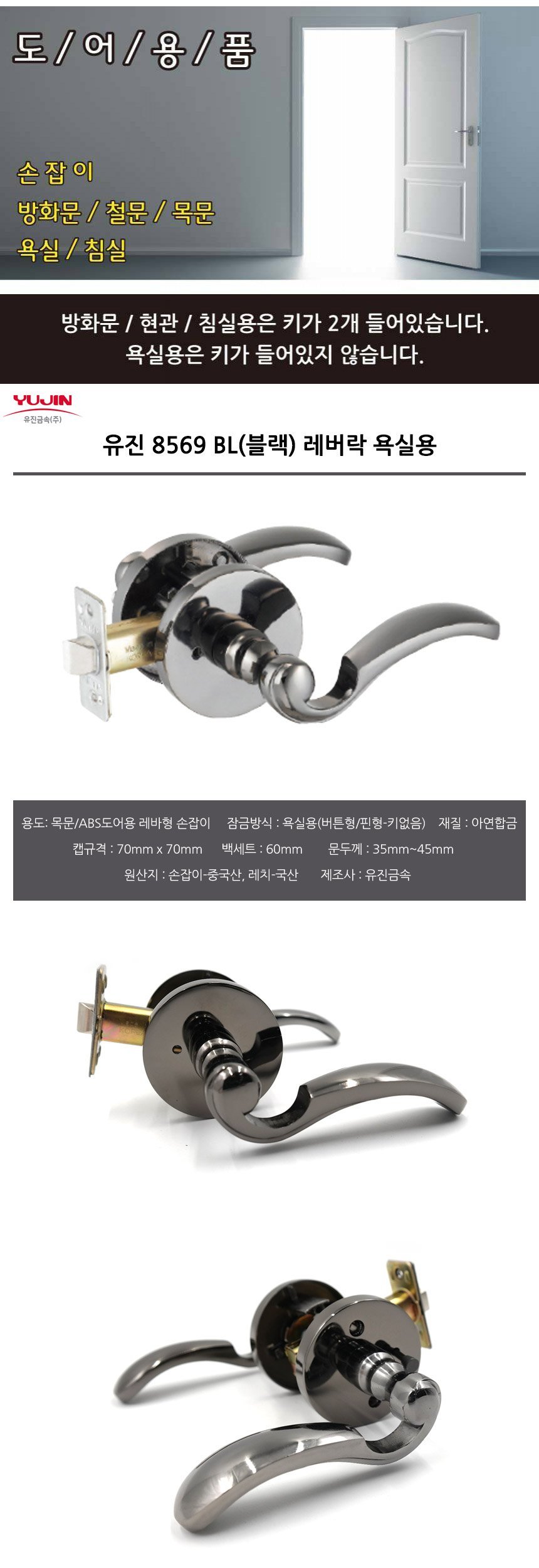 유진 8569 BL 블랙 목문 방문손잡이 욕실용