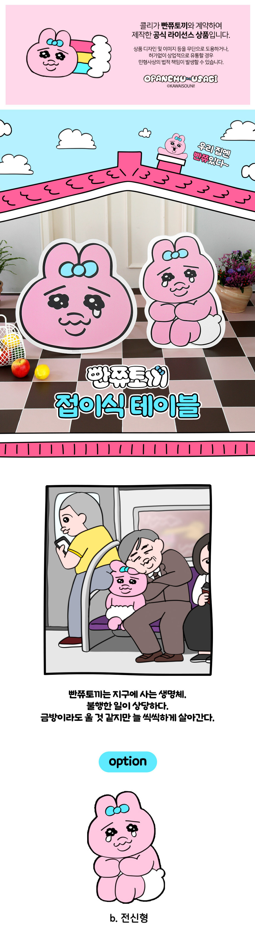빤쮸토끼 굿즈 접이식 테이블 전신형
