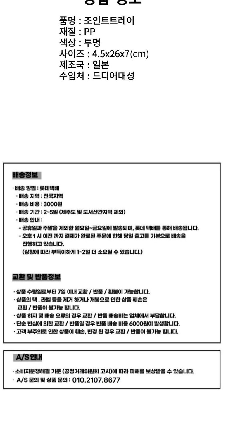 제품하자가 아닌 소비자의 단순변심, 착오구매에 따른 청약철회 시 소비자가 부담하는 반품비용 등에 관한 정보 배송ㆍ교환ㆍ반품 상세설명페이지 참고