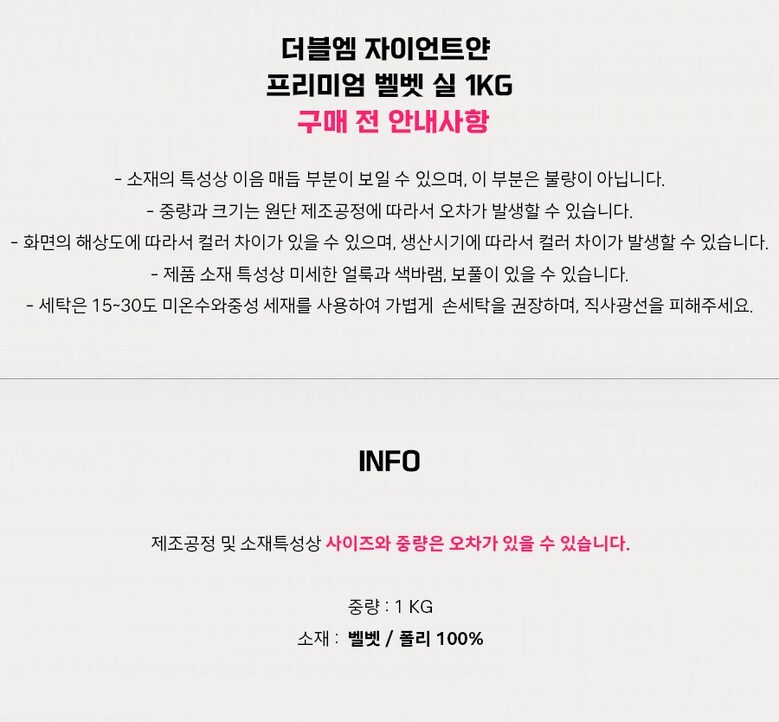 더블엠 자이언트얀 벨벳실 1KG 가방 망고실 빅얀 루피실 왕모찌실