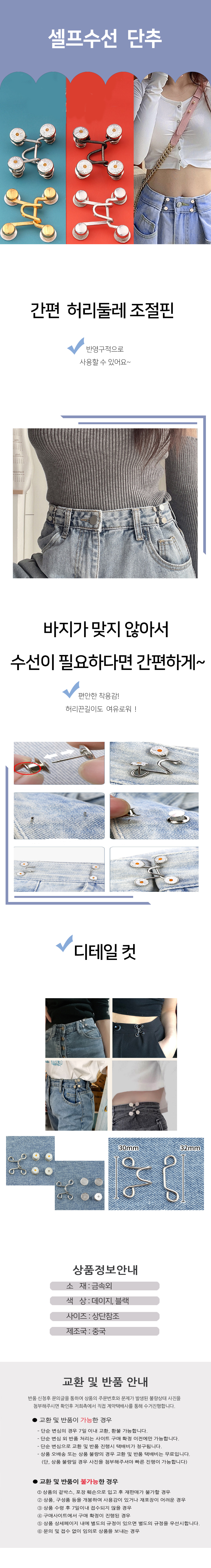 셀프 간편수선 허리줄임단추 수선핀 조절핀