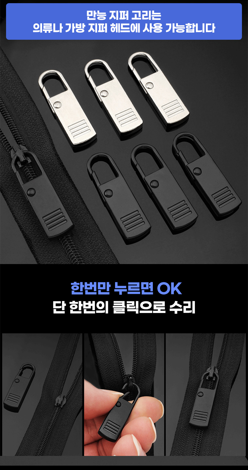 만능 지퍼 고리 가방 슬라이더 교체 셀프 수선 손잡이 자크 작크 머리 부자재 스트랩 패딩