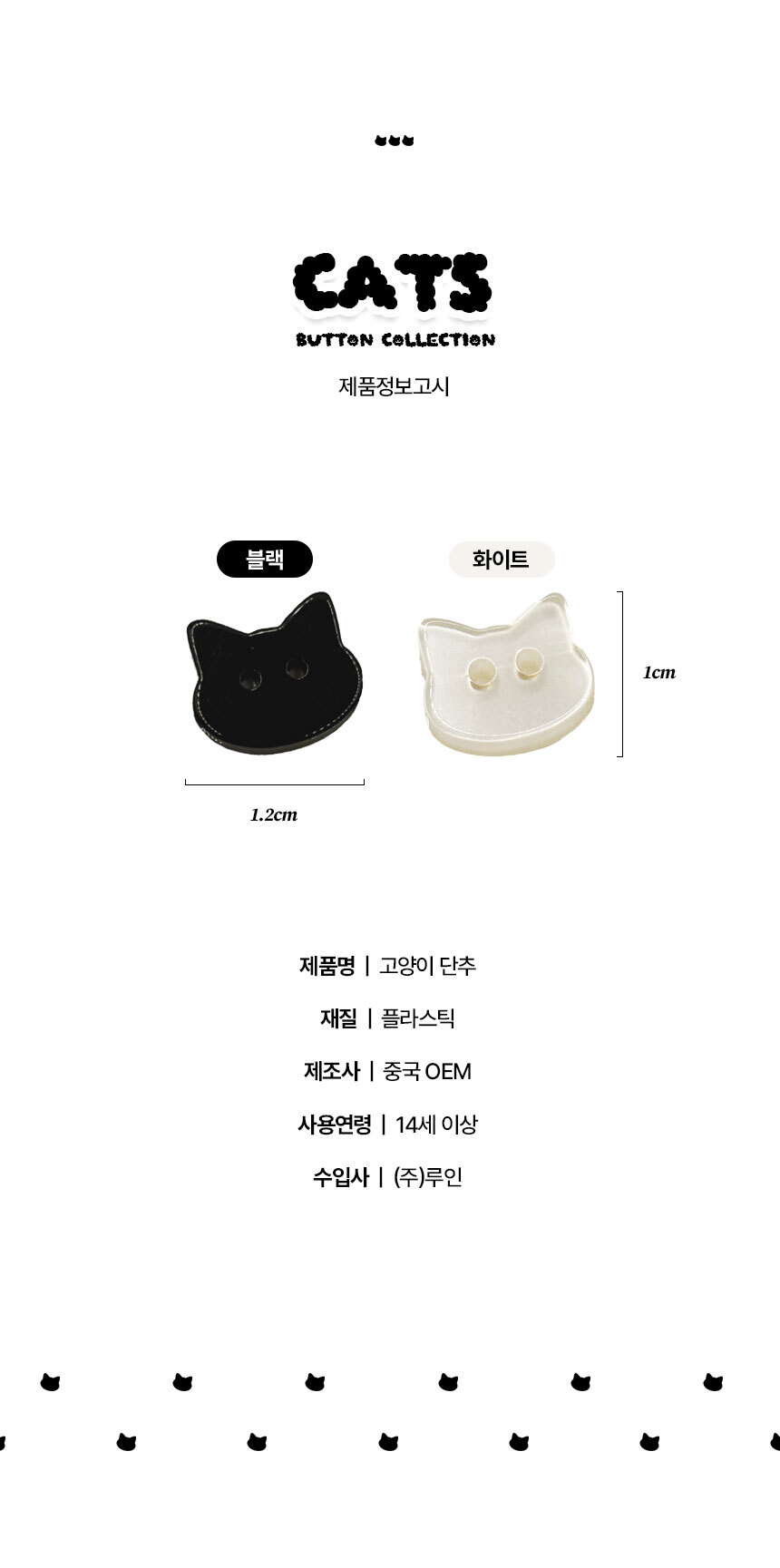 귀여운 고양이 단추 예쁜 이쁜 12mm 부자재 가디건 셔츠 블라우스 자켓 원피스 빈티지