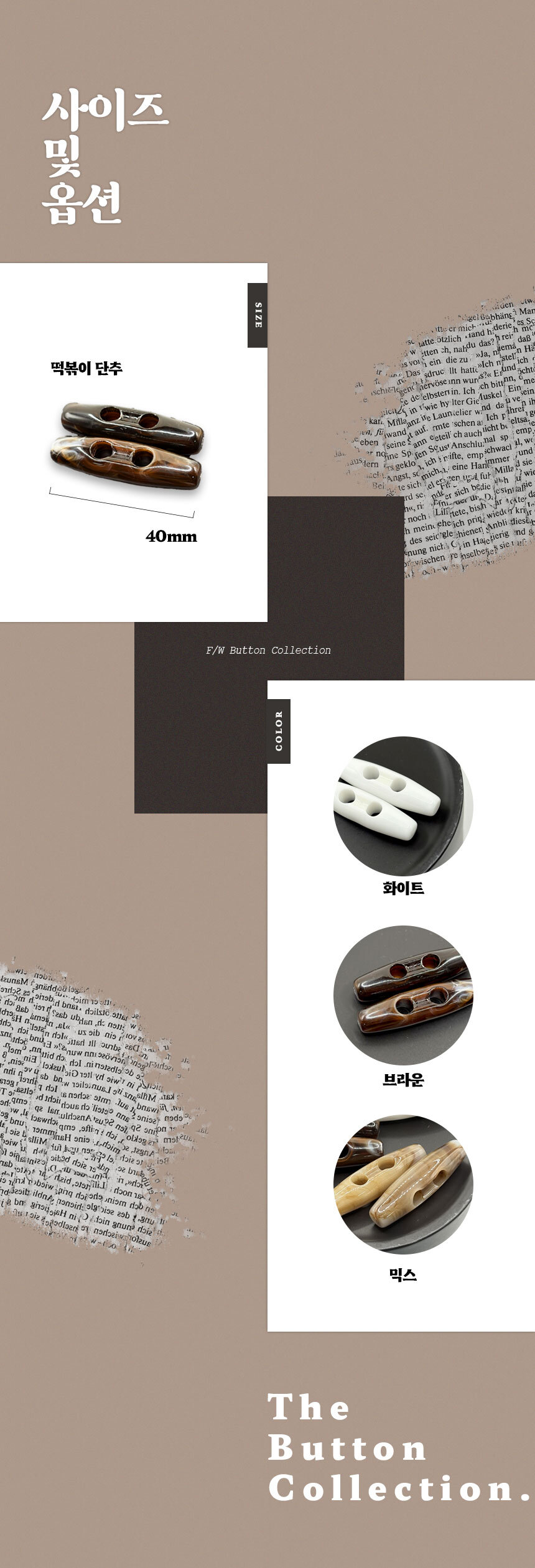 예쁜 떡볶이단추 토글 단추 코트 나무 뿔 이쁜 외투 검정 우드 큰 의류 막대 긴거 부자재