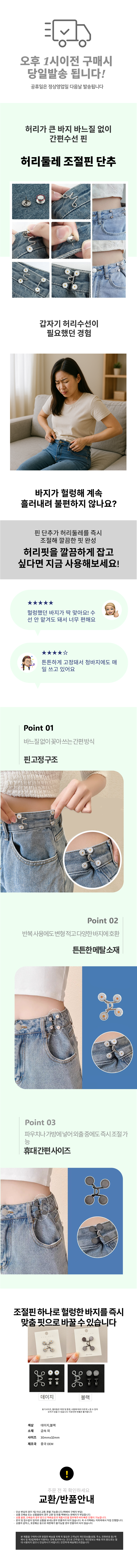 셀프수선 허리둘레 조절핀 청바지 수선 단추