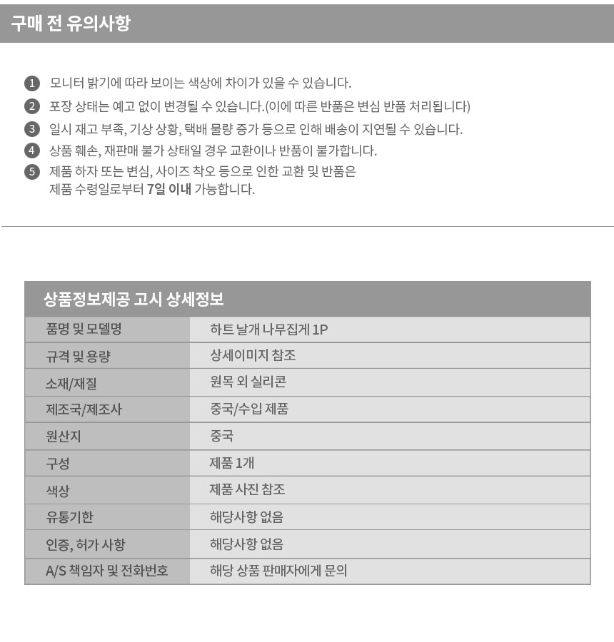 재화등의 A/S 관련 전화번호 상품 상세설명페이지 참고