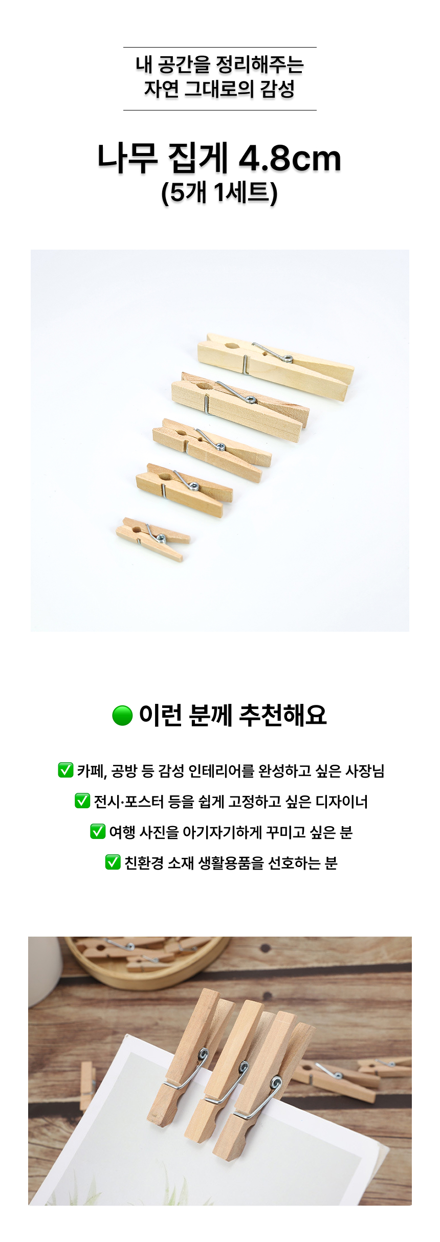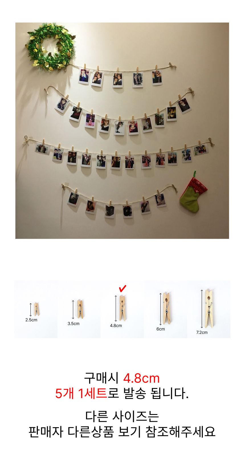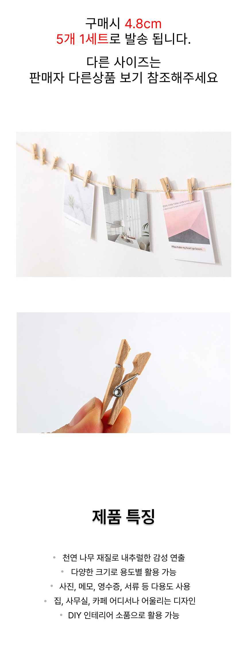인테리어 나무집게 원목 DIY 사진집게 4.8cm (5개 1세트)