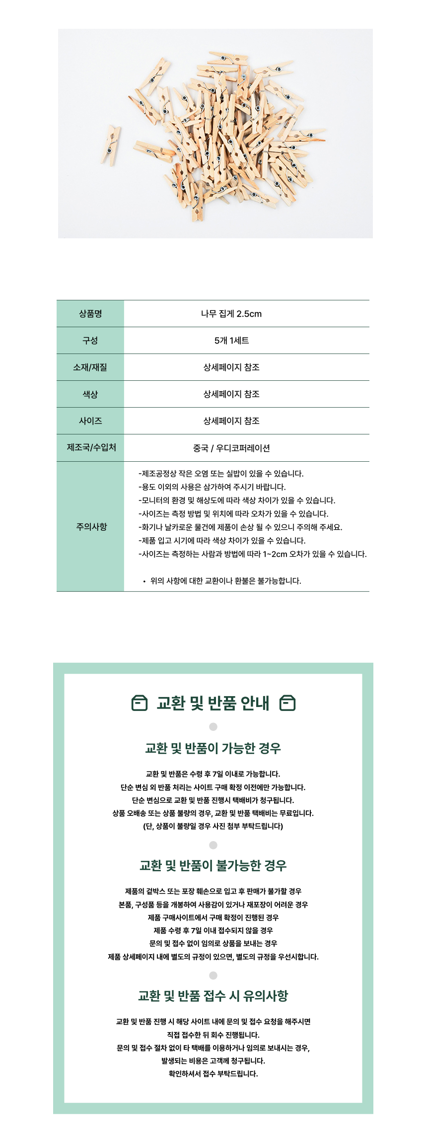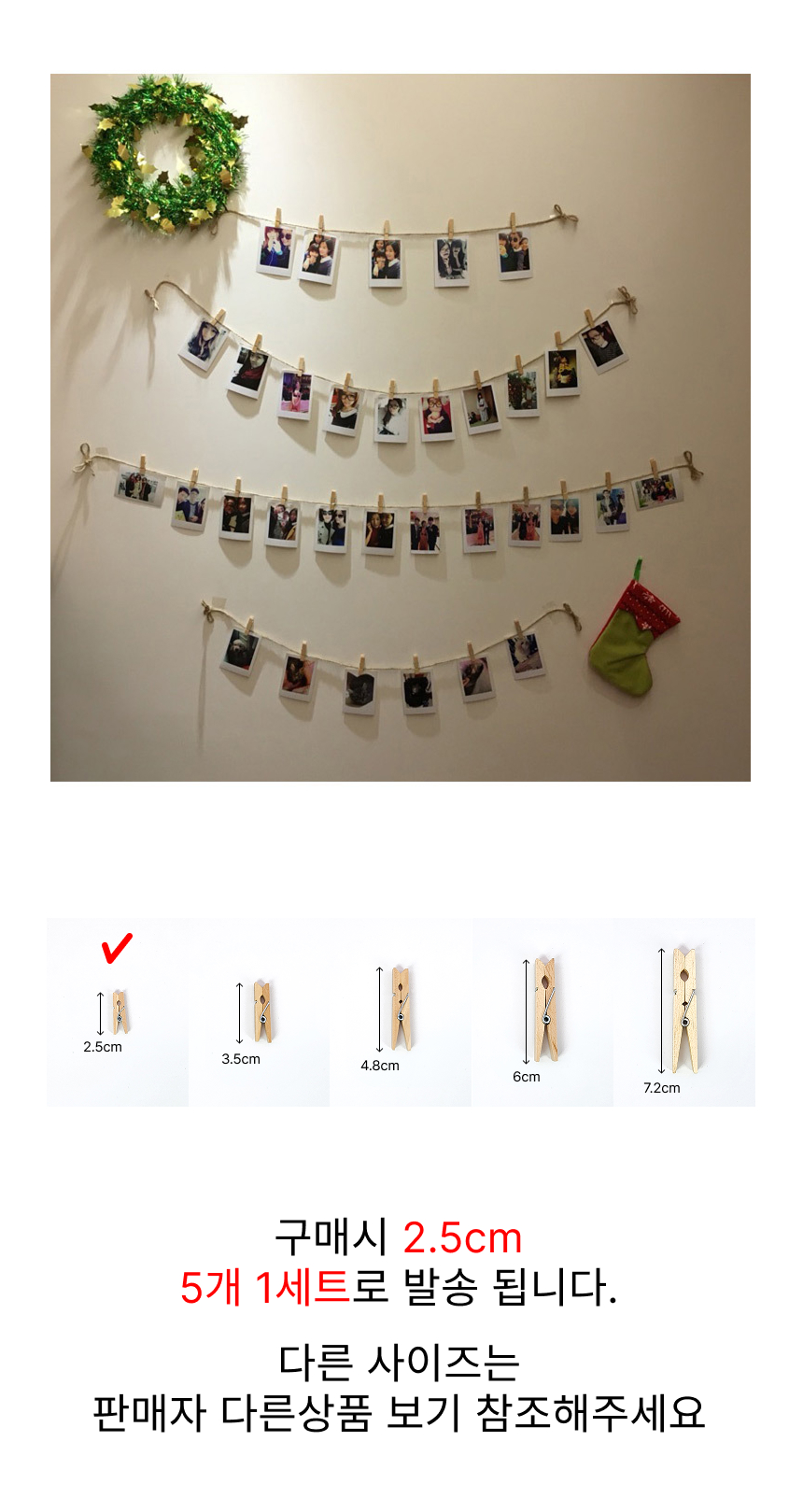 원목 집게 꾸미기 DIY 사진집게 방꾸미기 2.5cm (5개 1세트)