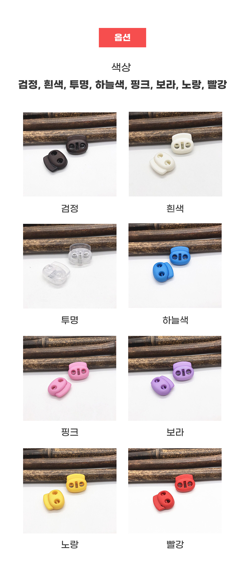 컬러 돼지코 스토퍼 끈조절 스트링 스토퍼 코드락 끈조리개 끌길이 조절 고무줄 바지 부자재