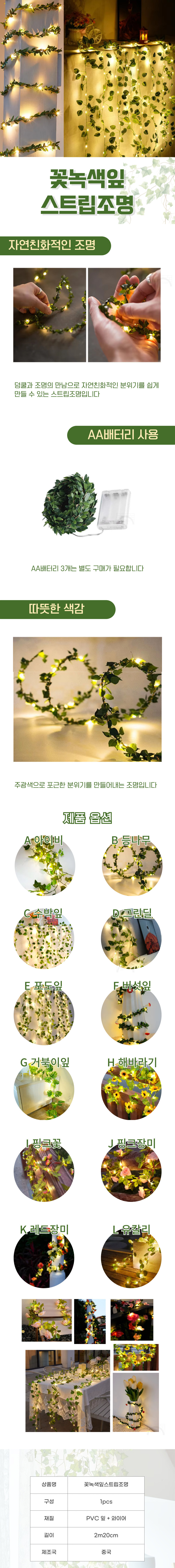 나뭇잎 줄 스트립 조명 라이트 인테리어조명