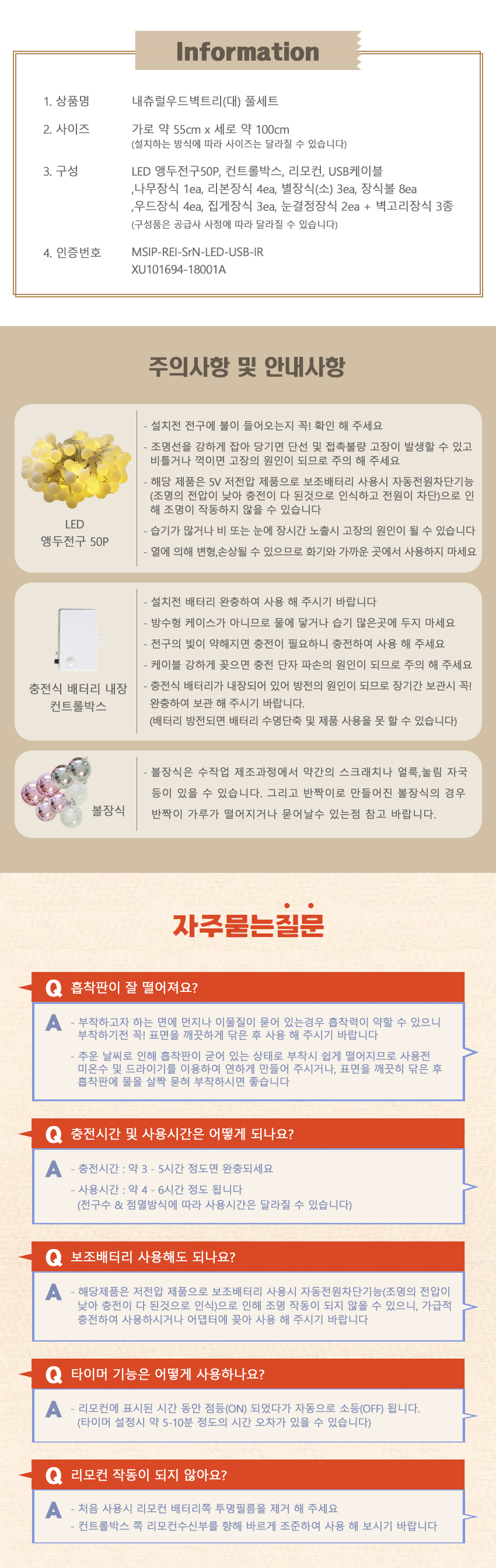 | 품명 및 모델명 | 내츄럴 우드 50P 벽트리 풀세트 |