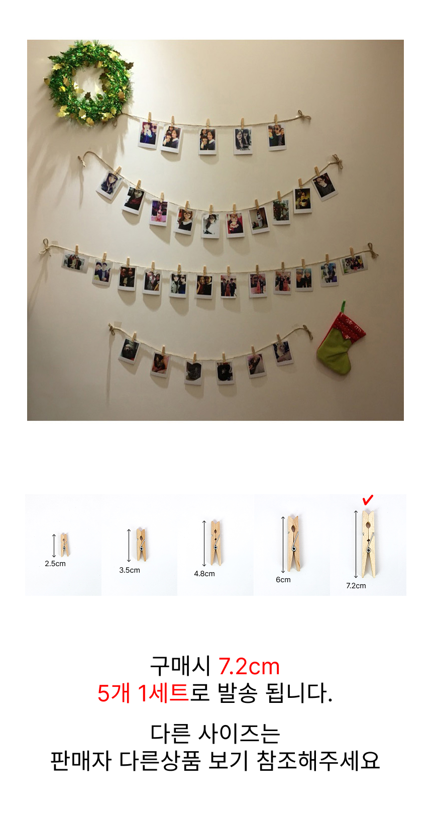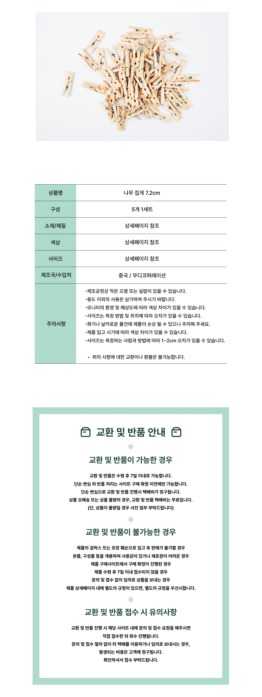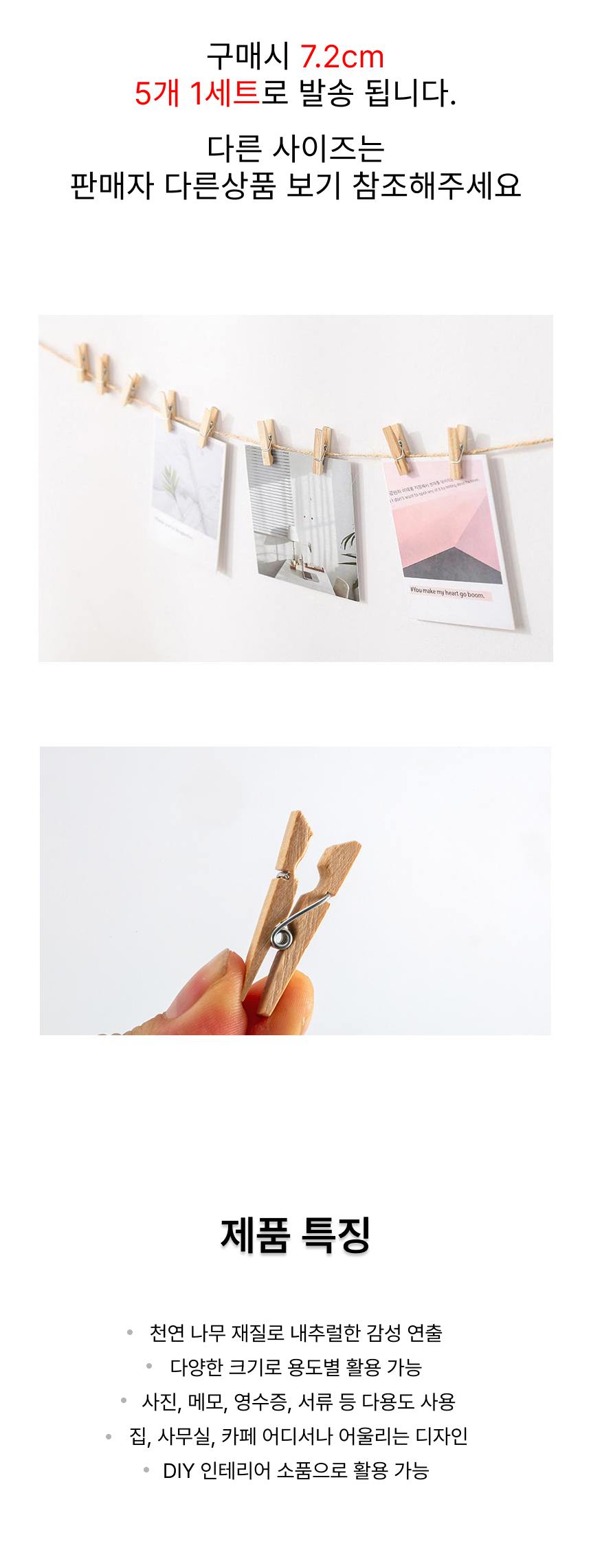 나무집게 감성 인테리어 원목 DIY 7.2cm (5개 1세트)