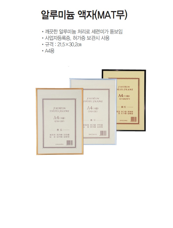 품명 및 모델명 대상액자 알루미늄액자(매트무) (30.2×21.5cm 금색)