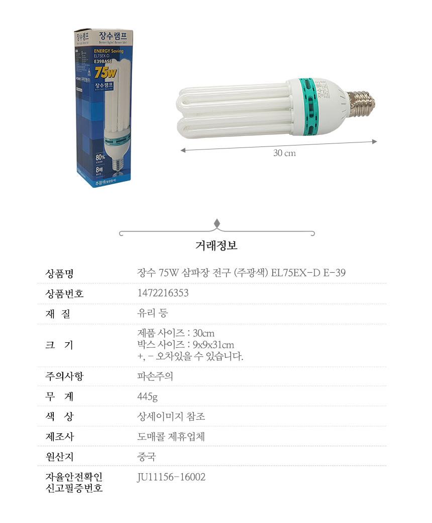 삼파장 램프 75W 주광색 삼파장전구 전구조명 전구