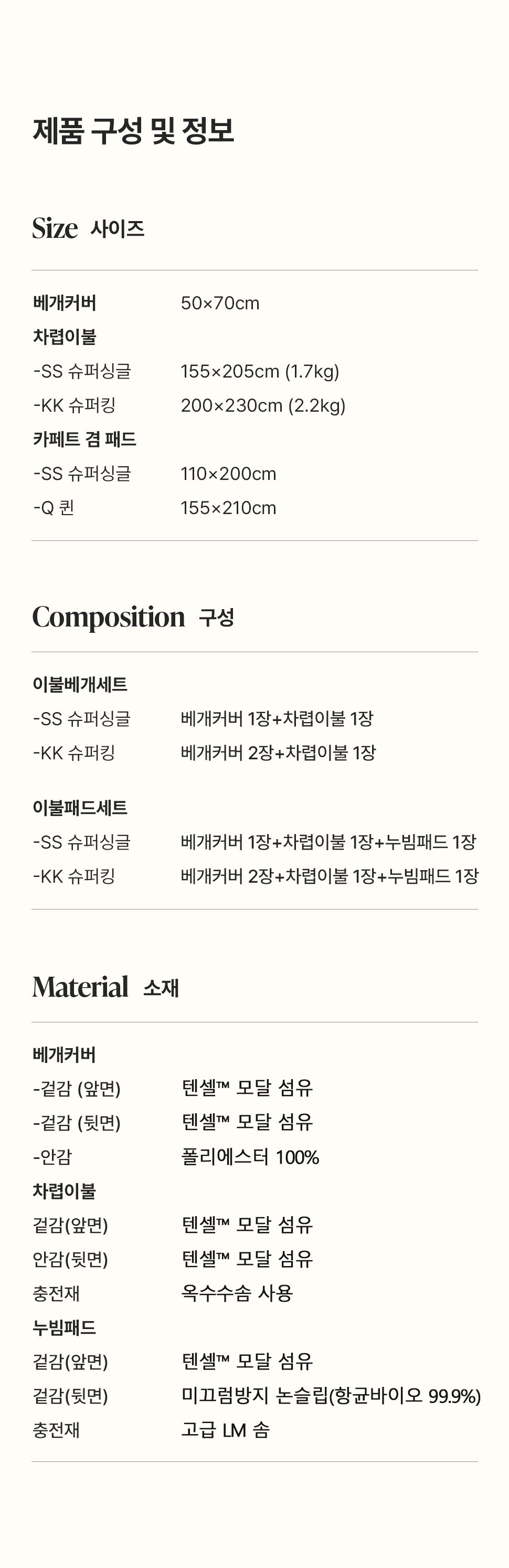 | 제품 소재 | 제품 소재:상세설명참조 / 충전재:상세설명참조 |