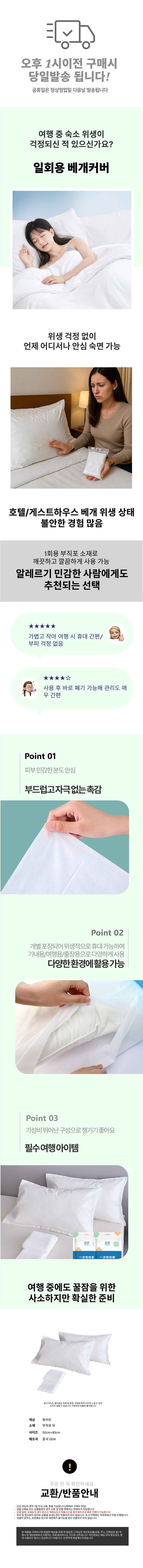 커버 여행용 교체 부직포 베개커버 1p 방수 침대용