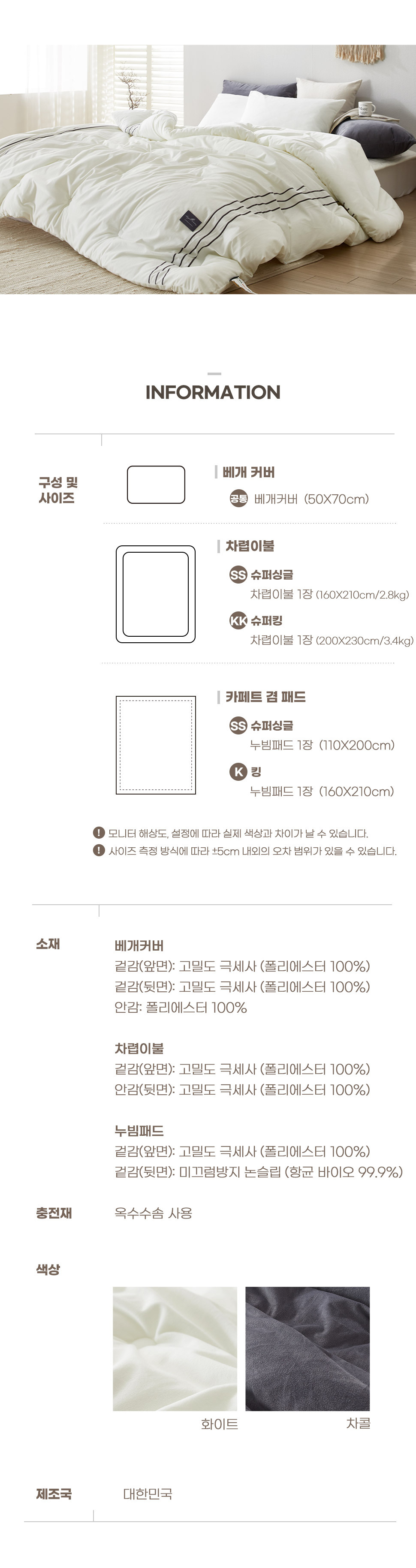 제품 소재 제품 소재:상세설명참조 / 충전재:상세설명참조