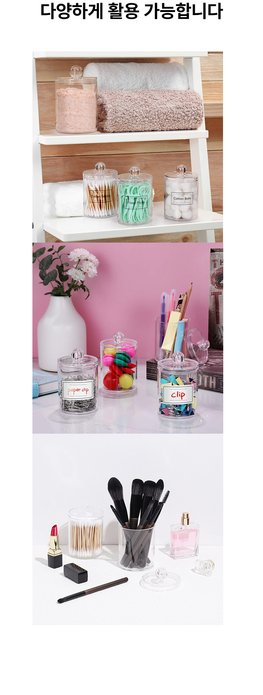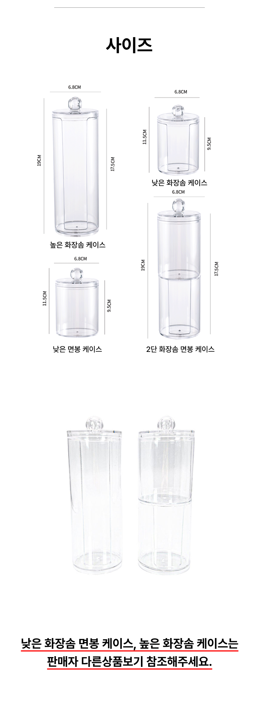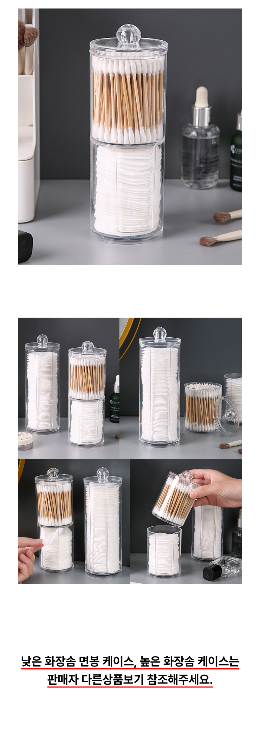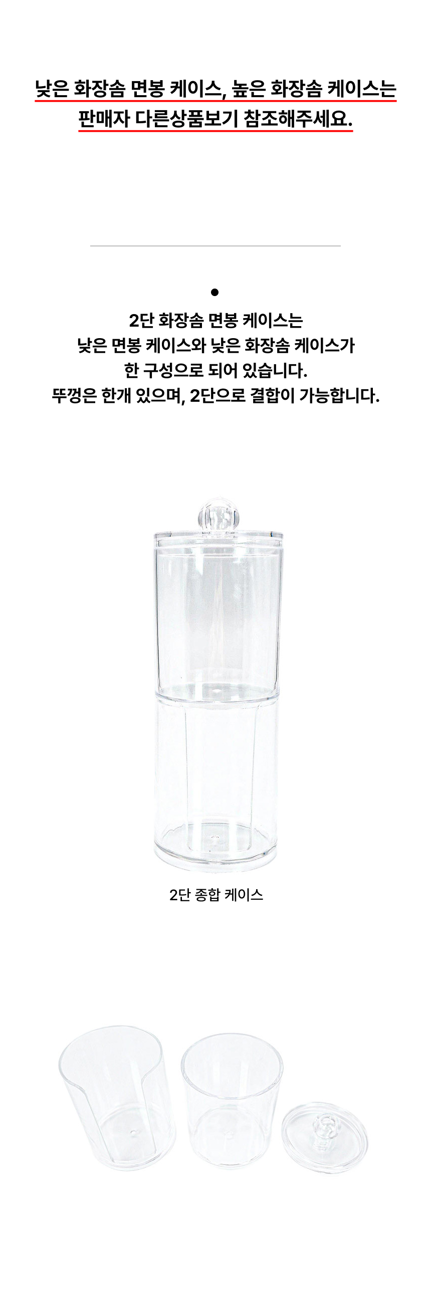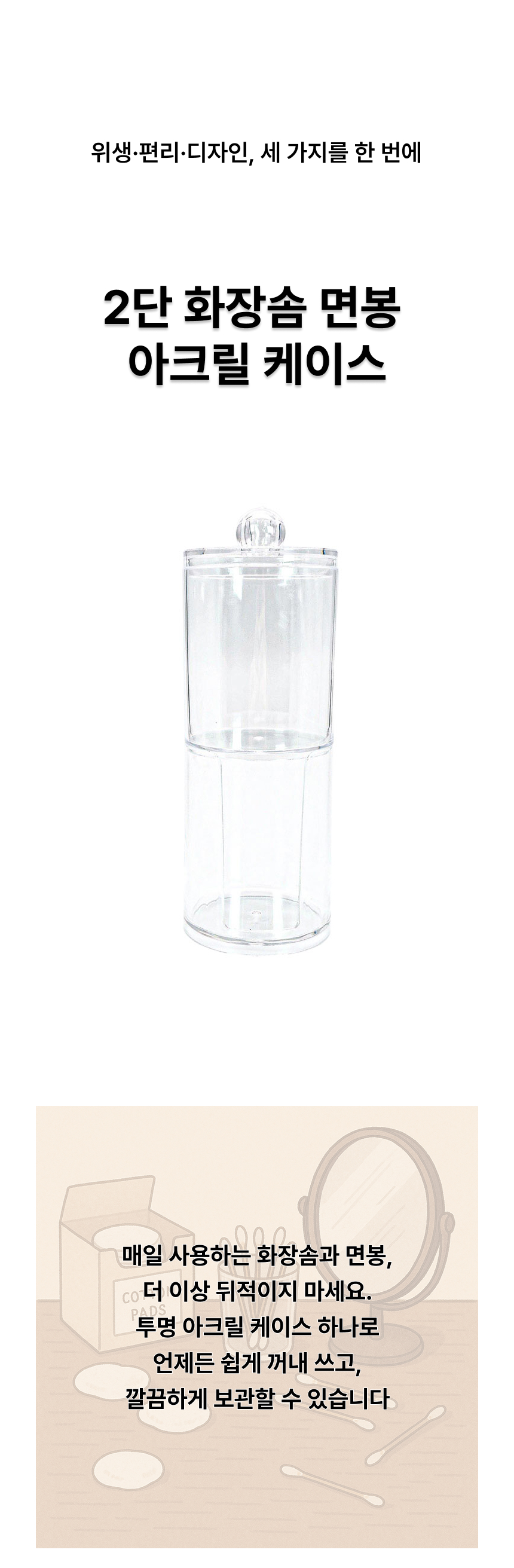 화장솜 면봉 2단 케이스 투명 아크릴 보관통