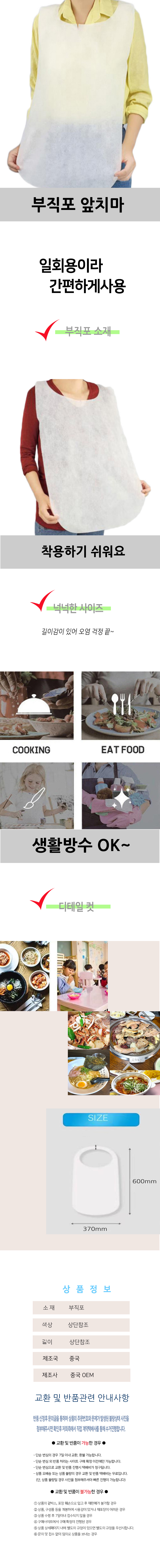 일회용 미술 공방 식당 위생 생활방수 턱받이 앞치마