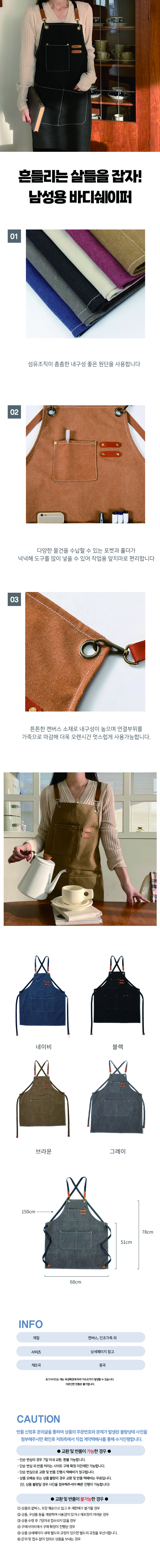 공예 카페 목공 바리스타 작업용 옥스포드 앞치마
