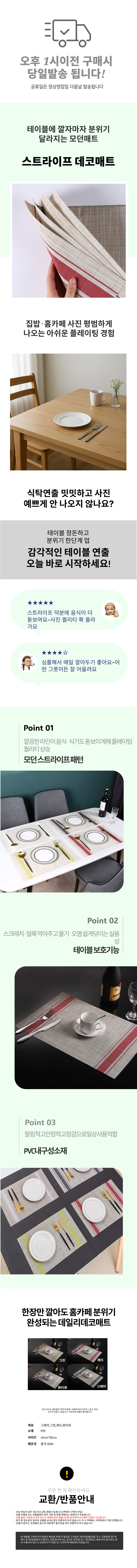 테이블 플레이팅 데코 매트 스트라이프 북유럽풍