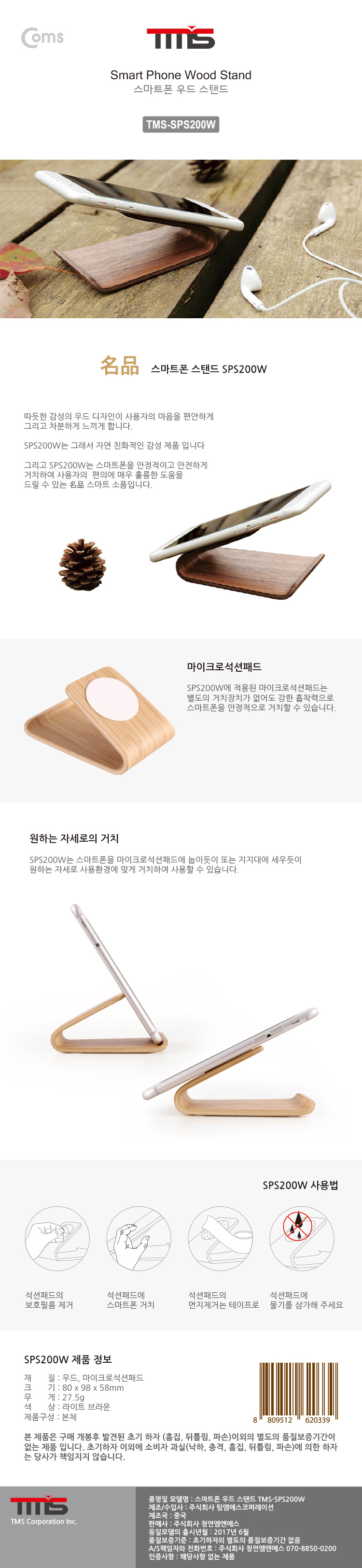 CY2033 스마트폰 우드스탠드/목재/마이크로석션패드적용
