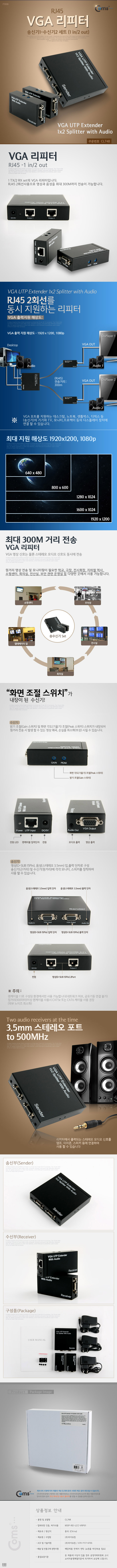 VGA 리피터/RJ45 (1 in/2 out),송신기1 수신기2 세트 CL748