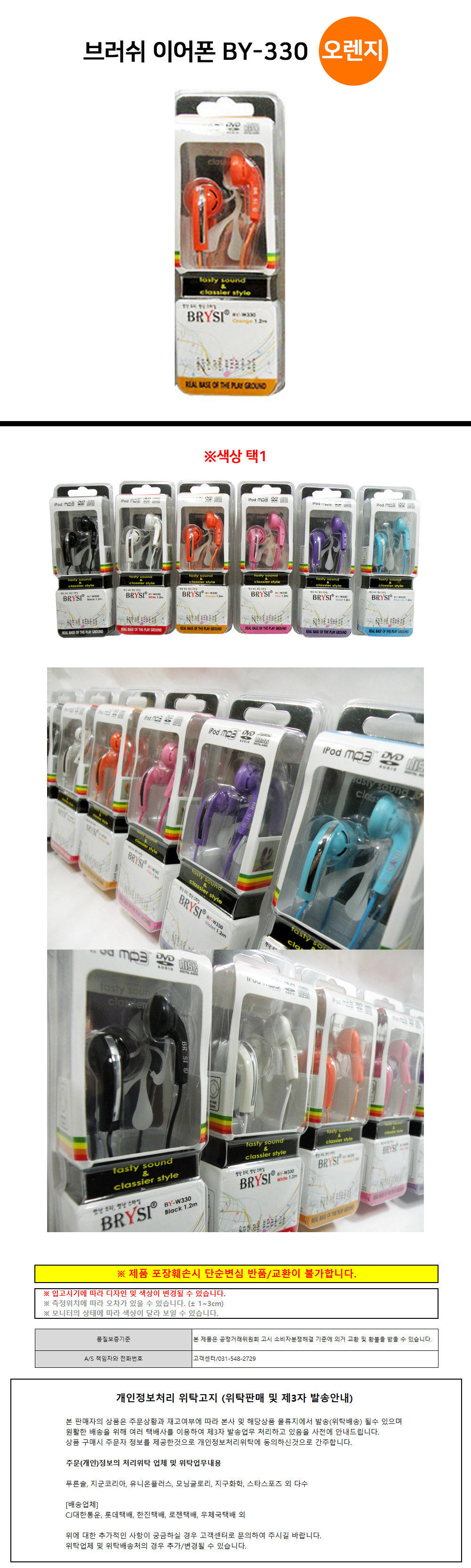 브러쉬 스마트폰 이어폰 BY-330 (오렌지)