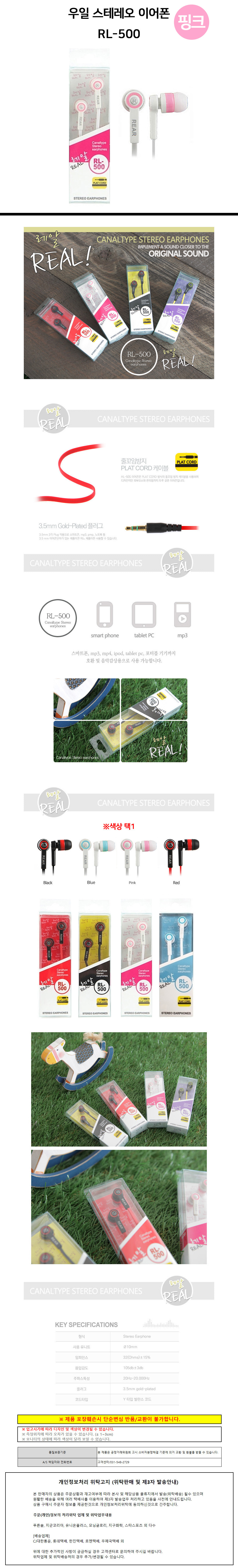 우솔 스마트폰 이어폰 스테레오 RL-500 (핑크)