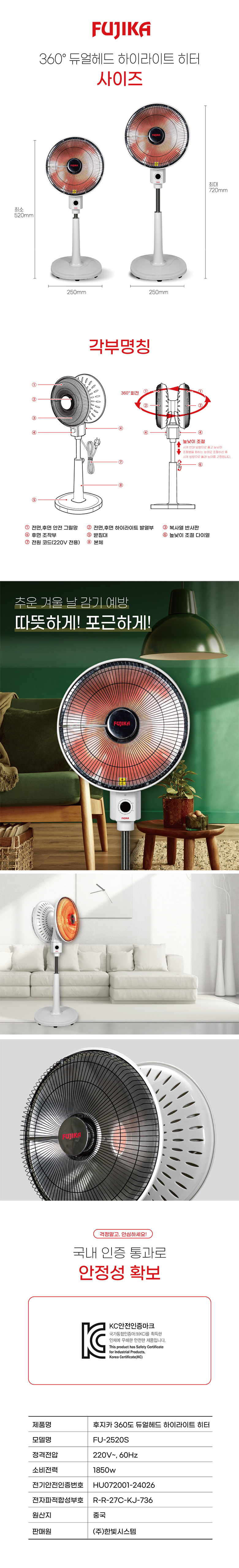 | 품명 및 모델명 | 품명:후지카 듀얼헤드 히터 / 모델명:FU-2520S |