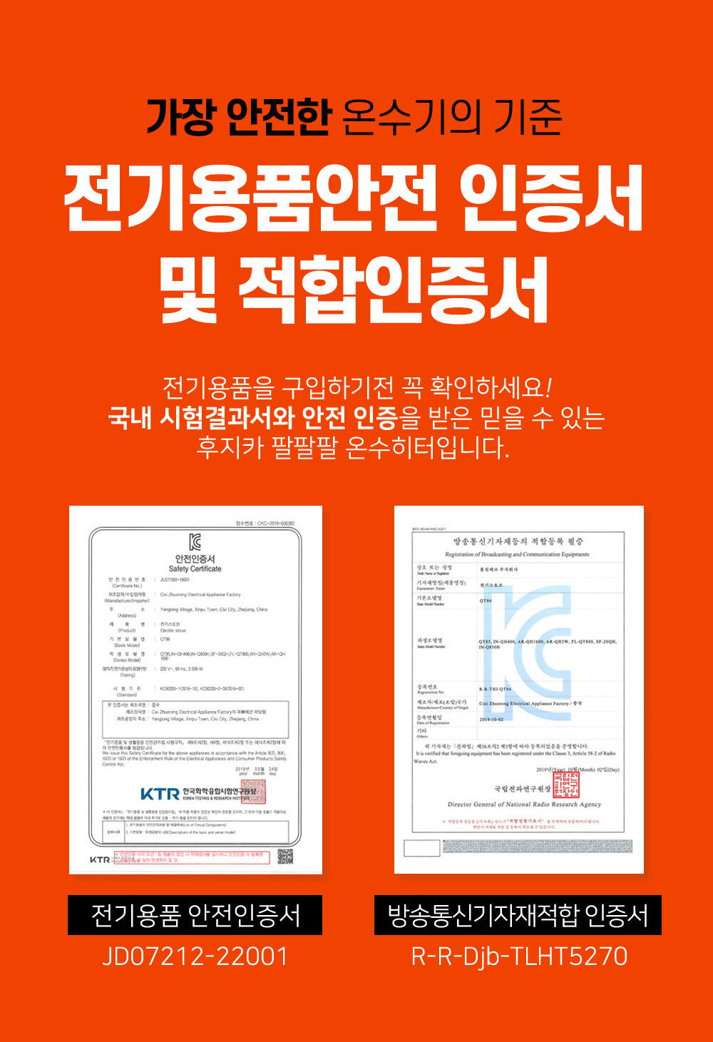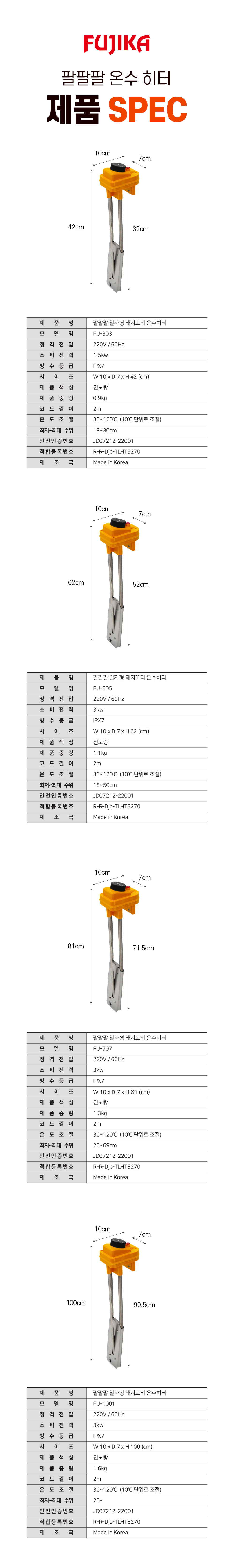| 품명 및 모델명 | 품명:팔팔팔 일자형 돼지꼬리 온수히터 / 모델명:FU-303 |