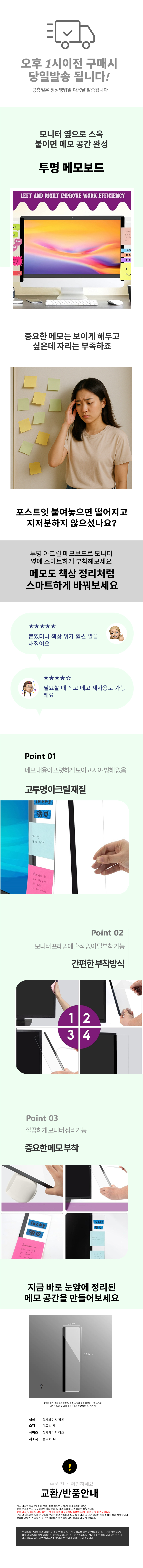 주문서걸이 투명 모니터 부착 메모보드 메모 홀더