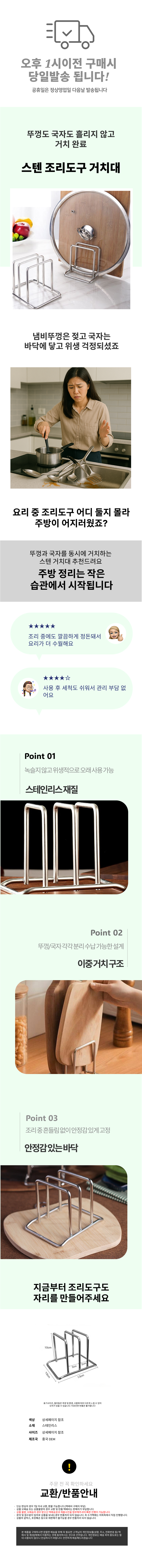 정리 조리도구 거치대 냄비뚜껑 국자 받침대 위생적