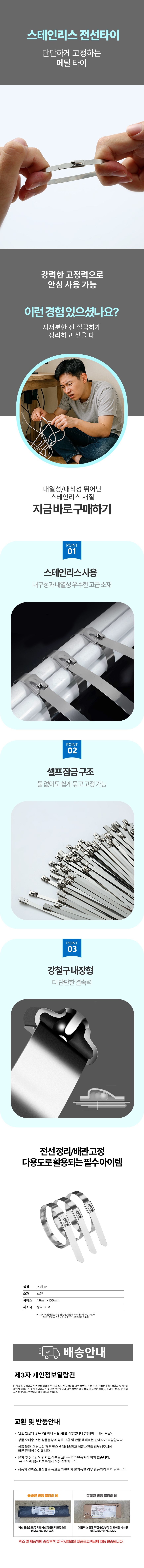 스틸 지퍼 내열 홀더 스테인리스 실버 타이툴 묶음