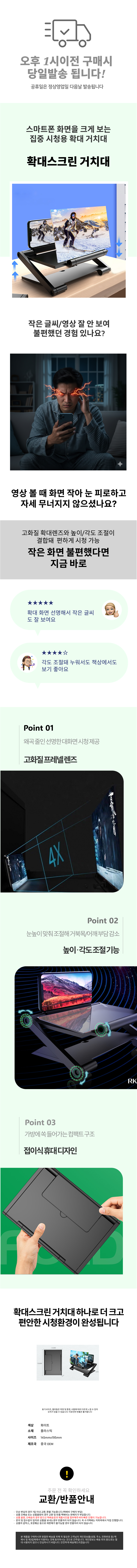 고화질 스마트폰 휴대폰 확대 스크린 거치대 크게