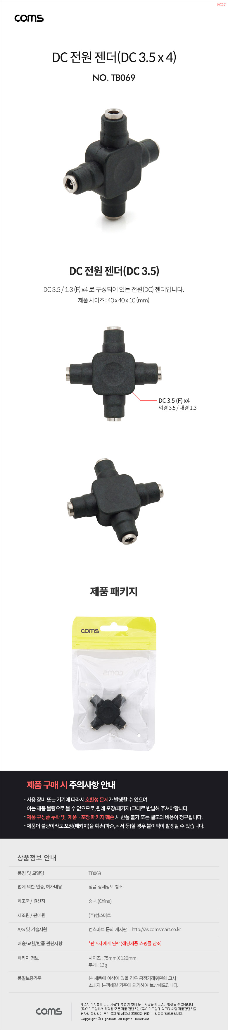 DC 전원 젠더 (DC3.5/1.3 F)x4 / +자