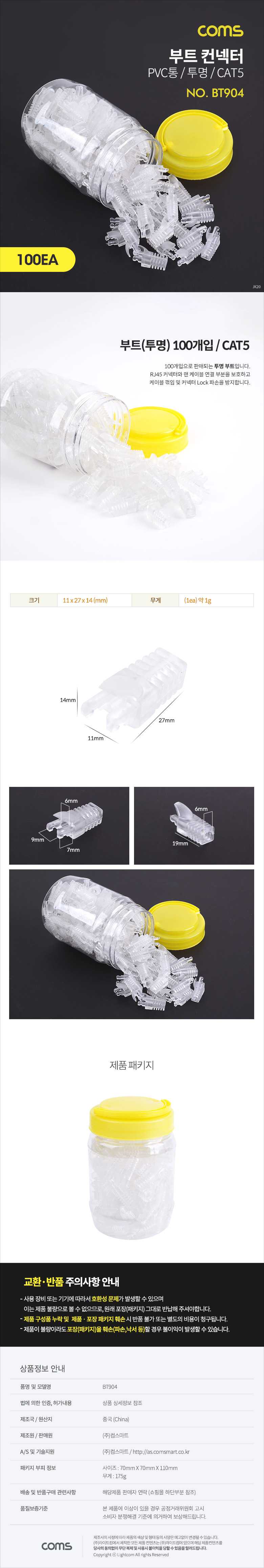 부트(투명) / CAT5 / PVC통 / 100ea, 커넥터, 컨넥터