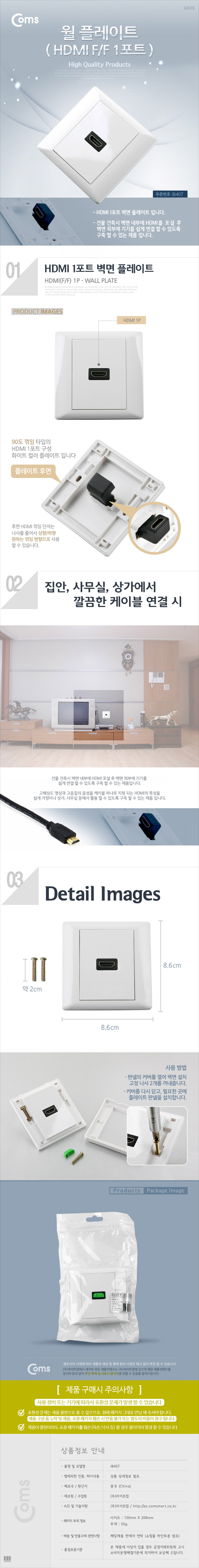 HDMI 월 플레이트 (HDMI F/F) 1P, 꺾임형(꺽임) / WALL PLATE