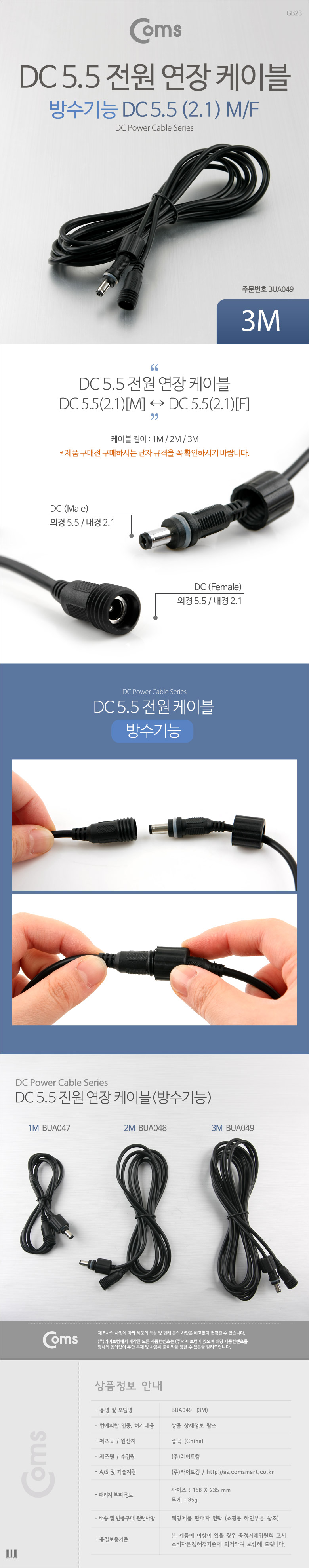 DC 5.5 전원 케이블(방수/연장), 3M 검정 BUA049