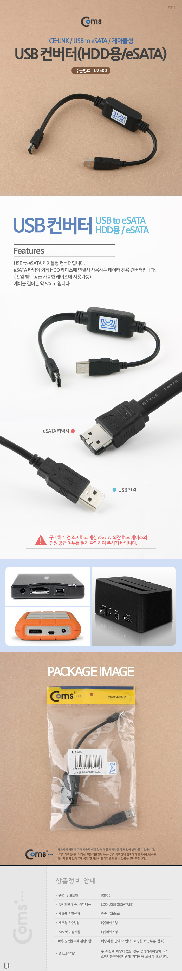 USB 컨버터(HDD용/eSATA) CE-Link U2500