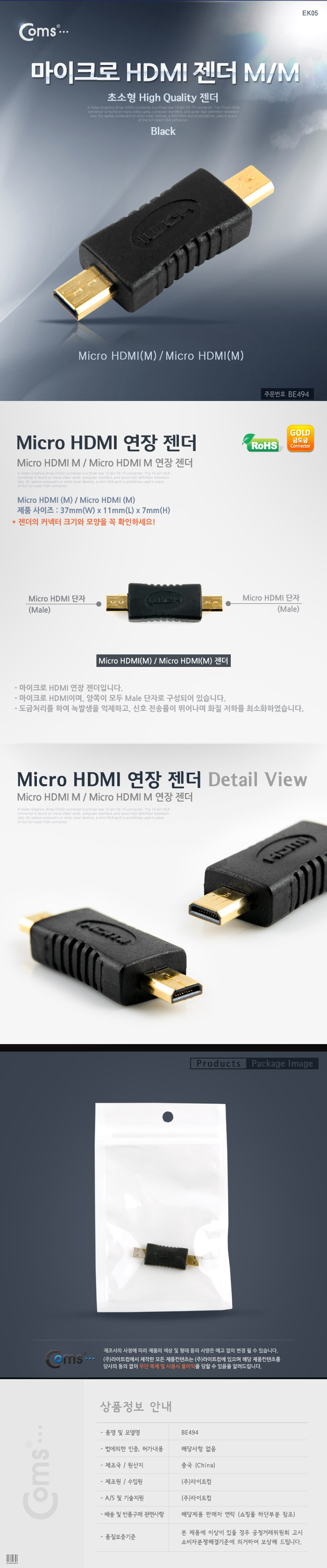 Micro HDMI 연장 젠더, 마이크로 HDMI M to M BE494